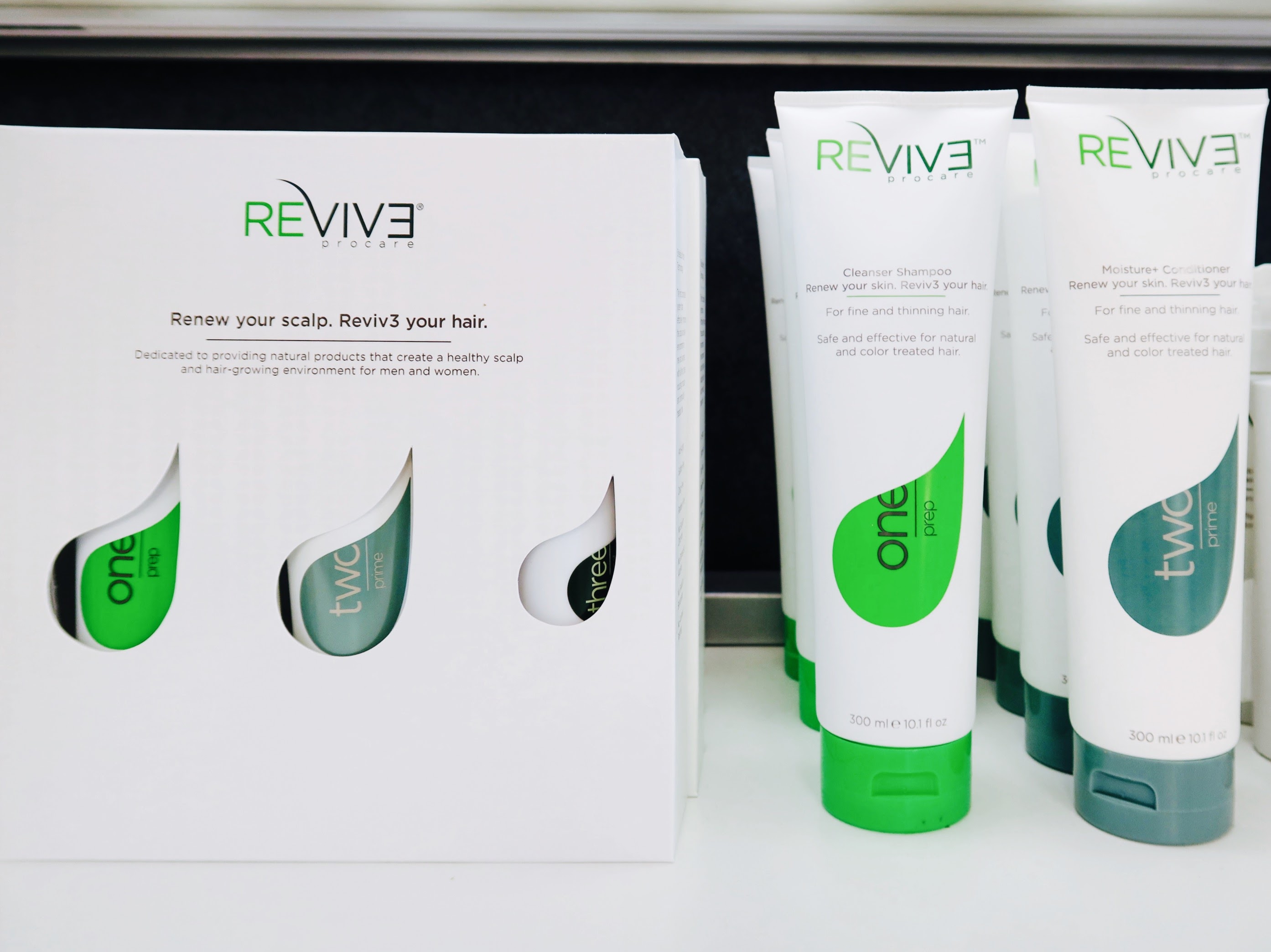 Whether her thinning hair is from the kids’ bad behavior or from post-pregnancy or menopausal hormones, Revive Procare could help! Revive Procare is a new product line we are featuring at Salon Visage. It is designed for improving scalp health and stimulating blood flow to the hair follicles without harsh chemicals or unwanted side effects.